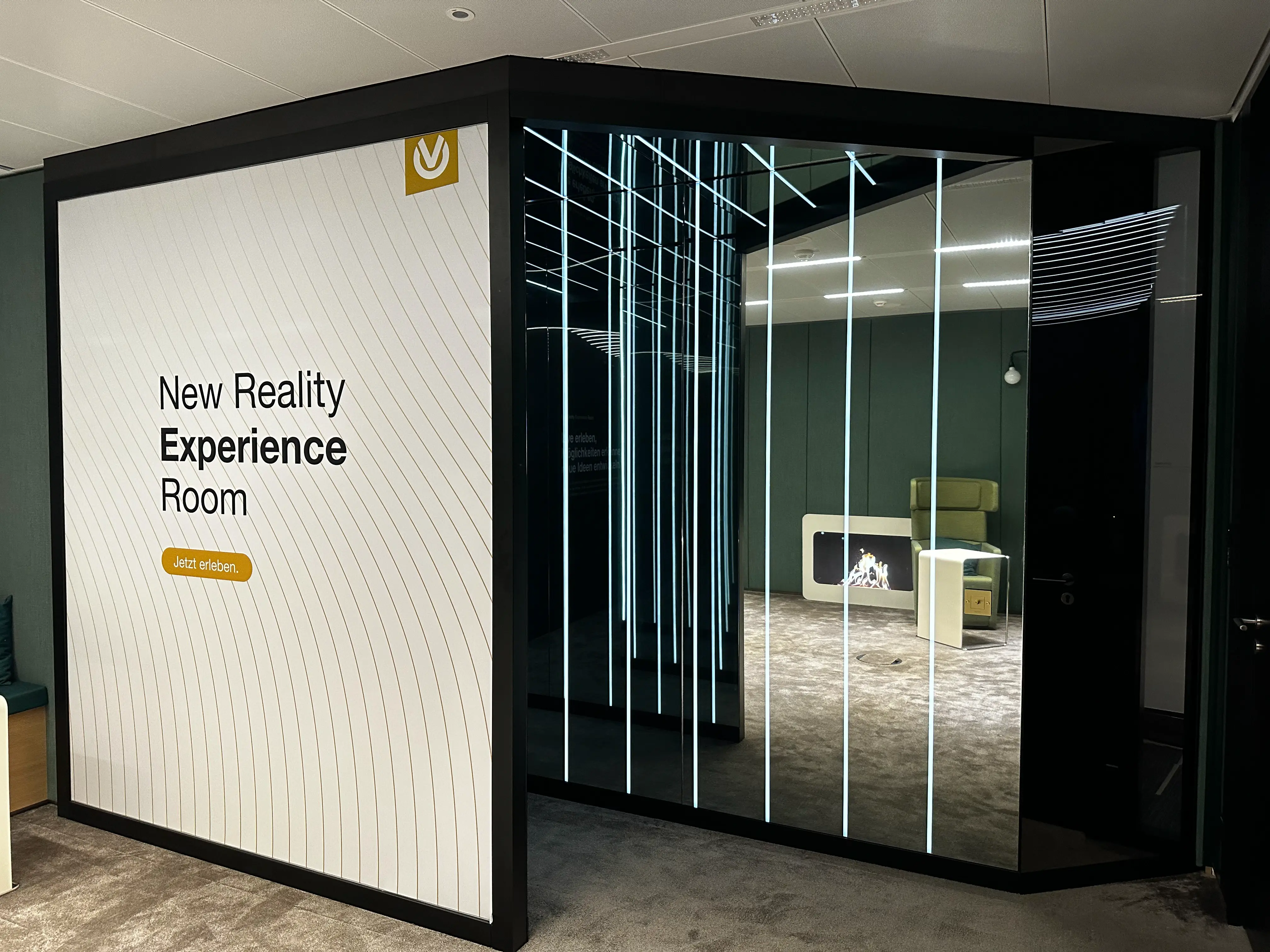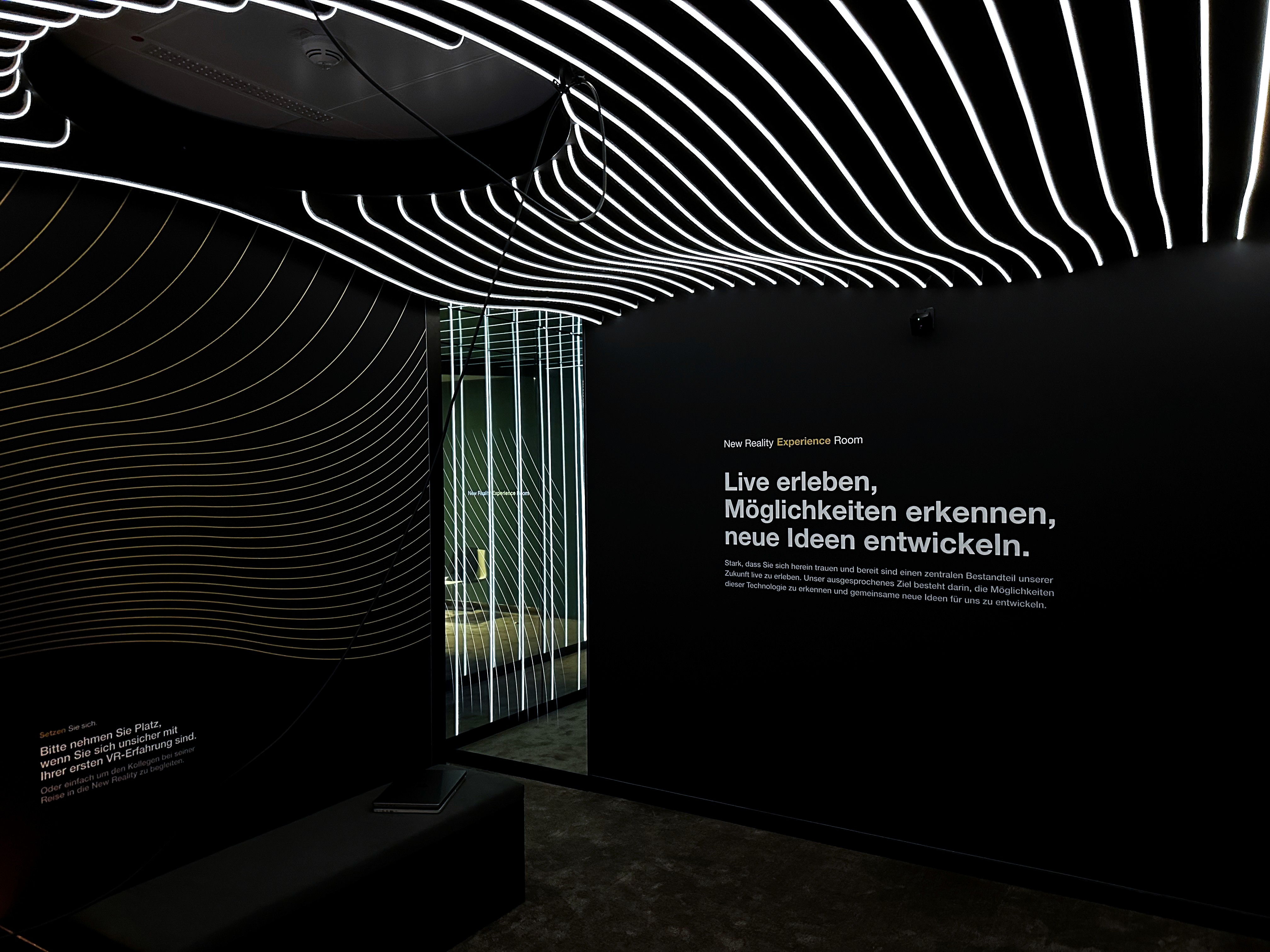 Der Raum wurde als physischer Erlebnisraum gestaltet, in dem virtuelle Welten gemeinsam erfahrbar werden. Besucher können das Erlebnis sowohl aktiv in Virtual Reality, als auch als Beobachter von der integrierten Sitzbank aus optisch und akustisch miterleben.